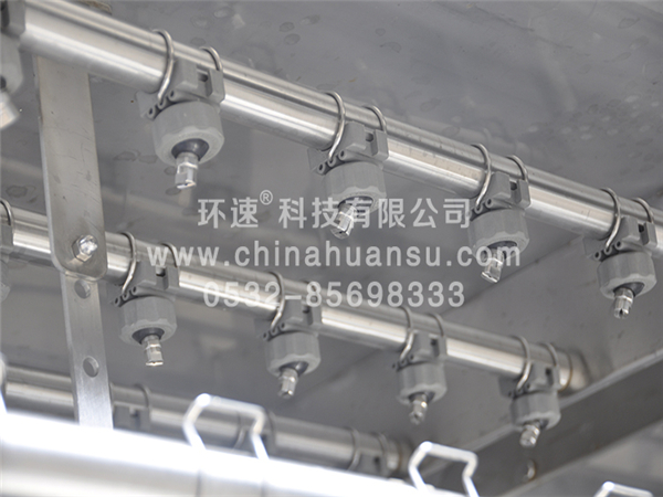 噴嘴采用食品級耐高溫塑料噴嘴或不銹鋼噴嘴,清洗角度可調;上下左右采用不同型號,避免死角,保證清洗潔凈度;