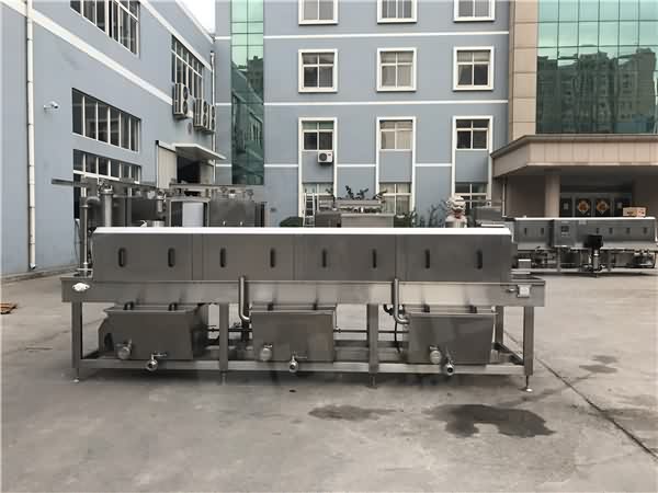 蔬菜塑料筐清洗機以特別的四步快速清洗使容器煥然一新,需清洗的周轉筐由不銹鋼鏈條輸入清洗機中,依次通過預洗階段、高壓清洗階段、漂洗階段、凈水清洗階段,實現360°無死角清洗。