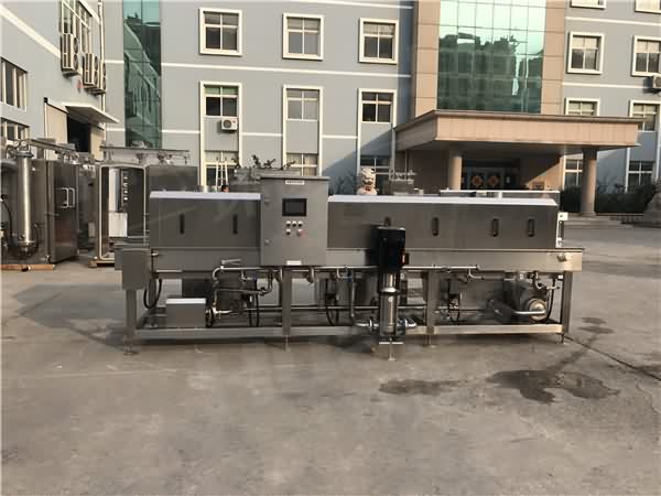 在浸泡階段中,塑料箱在清水中平穩地移動,同時,得到浸泡。周轉箱清洗設備裝備有性能良好的過濾裝置,過濾裝置為滑開式濾網結構,并裝備有污物自動排放機構。水平衡裝置的結構與洗瓶機水平衡裝置的結構相似。通過管路向凈水區、水噴身區和預噴射區供水。水槽的上面是水噴射系統,這樣,溢流的水就可以進入預噴射區:通過水槽進人預噴射區的遺留水將會改善預噴射區的預清洗效果。