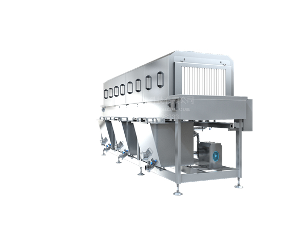 2.洗筐機分為四段清洗,第一組為預(yù)洗,第二組為主清洗,第三組為漂洗,第四組為噴淋