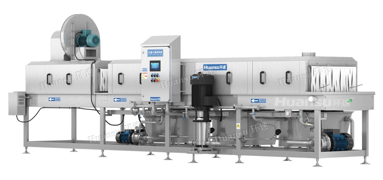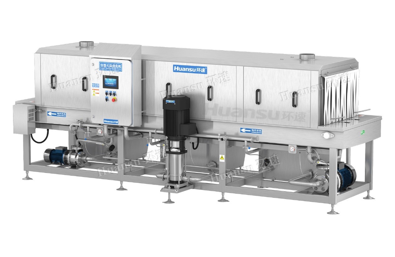 對于設(shè)備的衛(wèi)生情況,環(huán)速做出了全方面的考量。烘干式洗箱機(jī)使用SUS304不銹鋼材質(zhì)加工而成,管路采用無縫焊接技術(shù),內(nèi)外焊口平滑,無衛(wèi)生死角,整機(jī)可直接進(jìn)行滅菌水洗、化學(xué)清洗、蒸汽滅菌,清洗方便快捷,清洗后無細(xì)菌滋生,不會成為二次污染源,不會對箱子造成污染等問題。與傳統(tǒng)清洗不同,烘干式滅菌洗箱機(jī)只需2人即可完成傳統(tǒng)清洗10~20人的清洗量,可對接自動化設(shè)備,完成無人車間的快速清洗。在設(shè)備的運(yùn)行過程中,使用三級水箱更替用水,清洗水通過多級過濾循環(huán)使用,與傳統(tǒng)清洗方式相比,節(jié)省水、電能耗使用,大大提高了生產(chǎn)效率。
