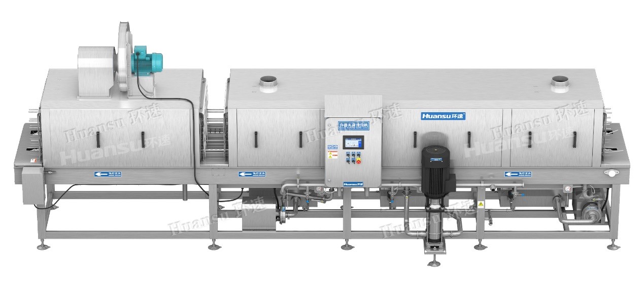 人們對于食品安全不僅僅是局限于食材安全等方面,也同時注重了容器方面的衛生情況。像家里用的刀具、筷子、盤和碗等方面的餐具,也開始使用各種小型家電進行高溫消毒殺菌,只為保障食品安全。而對于工廠來說,盛放食品的容器就像家中用的刀具、餐盤一樣,也需要在每次使用后進行高溫消毒殺菌,才能保障我們的食品安全。現如今,食品行業逐漸走上工業化,許多工廠開始選擇機械設備來代替人工進行清洗,但機械清洗也存在著許多弊端,如清洗不透徹、風干不透徹,清洗過程中需要添加大量清洗劑造成排放困擾等許多問題。為了解決這些難題,環速研發設計了塑料筐、盤清洗機,雙通道同時清洗,提高效率,使容器洗得透徹干凈。