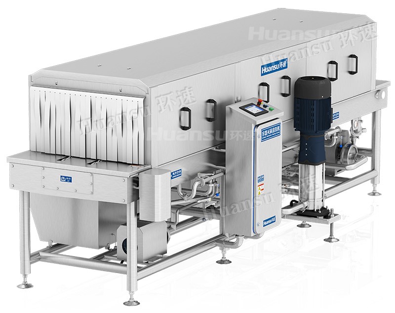 隨著食品工業化的逐步發展,塑料周轉筐憑借著環保、耐用、耐熱耐冷等諸多優勢已廣泛應用于各行各業,其中以食品行業和機械零配件行業為主。在過去的傳統清洗中往往需要投入大量的人工,清洗效率低下且廢水。而環速通過學習國內外先進設備的優點,融入多項新技術、新工藝并結合國內需求,研發設計了可配備風干、烘干系統的塑料筐清洗機,可清洗各行各業的塑料周轉筐,實現透徹快速清洗。
