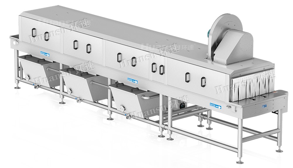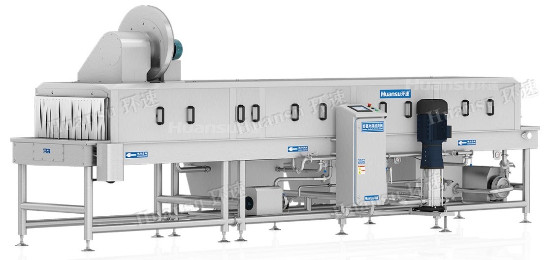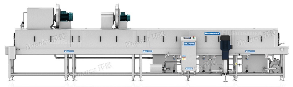 環(huán)速塑料筐清洗機(jī)可加裝風(fēng)干和烘干系統(tǒng)。利用高效率風(fēng)干系統(tǒng)可去除容器表面的水分,風(fēng)刀角度與高度可根據(jù)容器的形狀輕松調(diào)整;烘干系統(tǒng)可對(duì)盛放水果的塑料筐進(jìn)行高溫殺毒滅菌并去除容器殘留水分,提高容器周轉(zhuǎn)使用效率。與傳統(tǒng)清洗方式相比,使用環(huán)速塑料筐清洗機(jī)進(jìn)行清洗只需2人即可完成10~20人的清洗量,并可以完成人工清洗無(wú)法做到的高溫消毒滅菌。