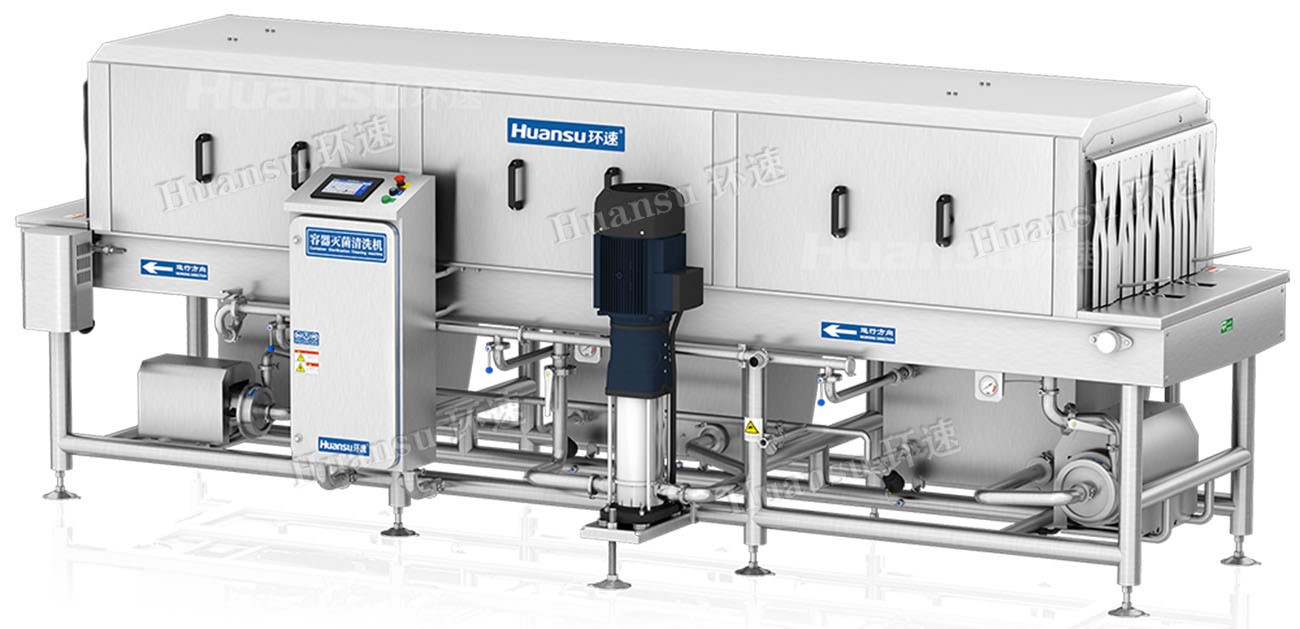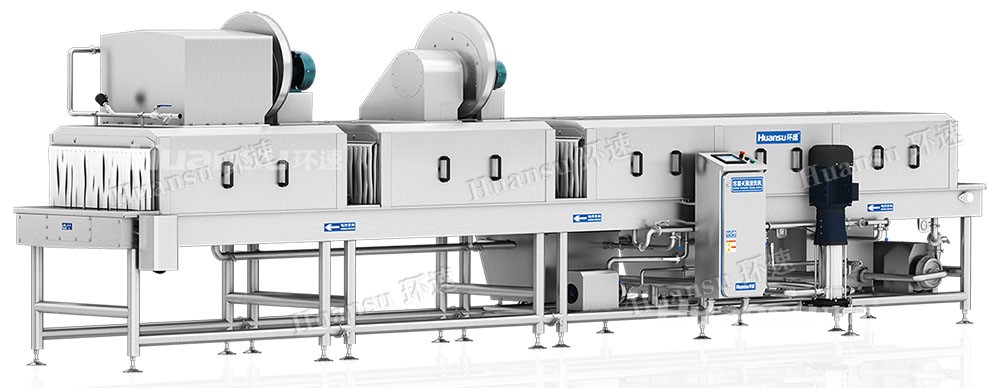 與傳統使用人工清洗方式相比,使用塑料筐清洗機進行周轉容器的清洗不僅清洗速度快且省時省力,還可以完成傳統人工清洗無法做到的高溫滅菌,消滅周轉容器表面殘留的細菌微生物完成透徹清洗。環速研發的塑料筐清洗機通過特有的“四步快速清洗”使帶有污漬的容器煥然一新。溫度是影響食品質量安全較重要的參數之一,一般微生物生長的適宜溫度為28°C-37°C,溫度越低,細菌繁殖越慢,溫度越高,細菌繁殖越快,但溫度過高,細菌就會死亡,容器滅菌清洗機使用80°C以上的高溫水對容器進行清洗,可以有效去除細菌并去除油污,完成透徹清洗。