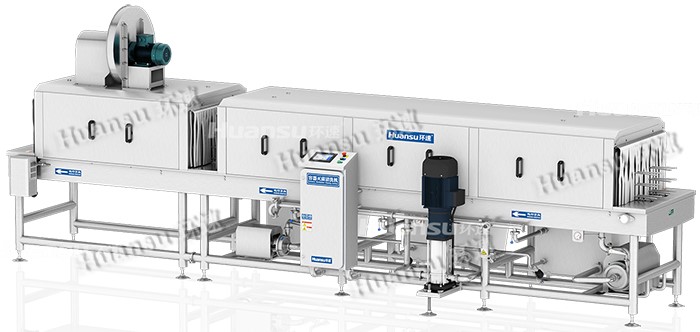 通過80℃以上的高溫水對模具進行滅菌清洗可以洗去表面的油污,通過專有的“四步快速清洗”使模具煥然一新,且環速研發的這款模具滅菌清洗機擁有雙通道,清洗數量大大提高,在使用2個人工的情況下一個小時可清洗200-1800只模具,并可以根據生產需求對清洗速度進行調節。與其他容器清洗機不同的是,環速研發的這款模具滅菌清洗機可加裝風干與烘干系統,通過高壓大流量風刀可去除容器表面的水分,通過高溫烘干系統可以去除模具表面殘留的小水珠,提高容器周轉效率。