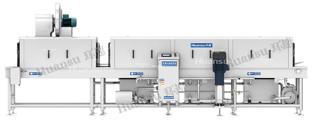 早期,隨著食品工業化的快速發展,保溫箱的使用量逐漸增大,再加上人工成本的逐漸增高,許多工廠開始使用機械設備代替人工進行保溫箱的清洗,但使用機械設備清洗也存在很多弊端。如:保溫箱清洗不透徹帶來食品安全隱患;清洗過程中需要添加大量清洗劑,造成水污染和排放困難,污染環境;設備本身無法做到透徹清潔,大量細菌滋生使設備成為污染源。為解決以上問題,環速研發了這款保溫箱滅菌清洗機。