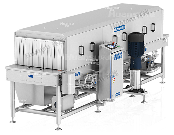 近幾年,隨著食品工業(yè)化的快速發(fā)展,在一些食品工廠,一些周轉(zhuǎn)容器的清洗成為了人們關(guān)注的重點(diǎn),且由于人工成本越來越高,許多企業(yè)開始選擇由機(jī)械清洗代替人工清洗,但是使用機(jī)械清洗也存在著諸多弊端,比如清洗不透徹會帶來諸多食品安全隱患;風(fēng)干不透徹會對容器的晾曬帶來壓力;為了清洗透徹而添加大量的清洗劑在排放時極易帶來污染;以及設(shè)備本身無法做到透徹清潔,容易滋生大量細(xì)菌,成為二次污染源。為了解決以上問題,環(huán)速研發(fā)人員在經(jīng)過多次國外學(xué)習(xí)后研發(fā)出了這款周轉(zhuǎn)筐清洗機(jī),對容器進(jìn)行透徹清洗。