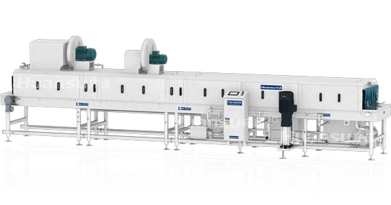 只清洗不滅菌,是治標不治本,只清洗卻不脫水,等于沒洗干凈。為了解決這些問題,容器滅菌清洗機專門搭載有風干機和烘干機,能通過風刀裝置把壓縮空氣轉化為薄片狀的高速氣刃,以較低的能耗達到很高的除水率。風刀裝置也采用環繞式布局,從四面八方合圍,勢將殘留的水一網打盡。烘干機額外裝備了多孔隙的蒸汽盤管結構,吸入的是高溫空氣,因而可產生更加“熱情”的高溫氣刃,不只與如水的往事一刀兩斷,更讓其消逝無痕。
