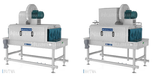 一入冬后,洗筐的工作便成了一項對意志的試煉。工人們的辛苦自不必多言,洗過的筐盤因為帶有水分,很快在低溫下結冰,相互粘連,既不能投入使用,也不利于集中存儲。這都是因為清洗后沒有對筐盤進行脫水導致的。這不只是冬天結冰的問題,筐盤殘留的水,對于對潔凈程度要求較高的產品而言都是不允許的,這些可能影響產品原有性質的水,本身就是一種污染物。因此,光洗筐不除水,也是洗不干凈的表現。利用高壓氣槍進行人工除水是可行的,但由于操作角度等因素的限制,除水率并不理解,總有殘留的水難以根除。此時,集成風干、烘干兩重除水功能的環速容器滅菌清洗機就派上用場了。