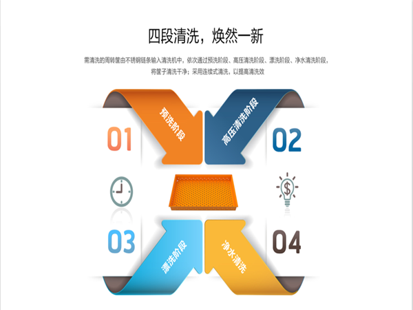 隧道式洗箱機主要用于水果行業,蔬菜行業,水產行業,屠宰行業,快餐行業,食品物流中心,配送中心等。適用于各種周轉筐,盤,箱,托盤,等容器的消毒和清洗。效果顯著,清洗完畢后檢測菌落小于10個,新型隧道式清洗機比傳統清洗機節省用水量百分之74,是新時代的好幫手。