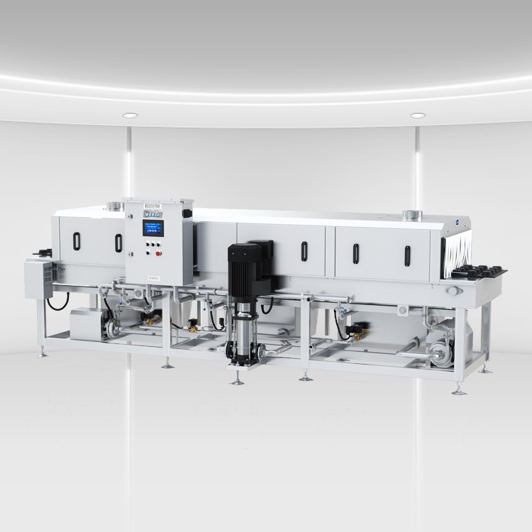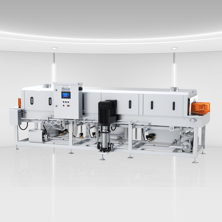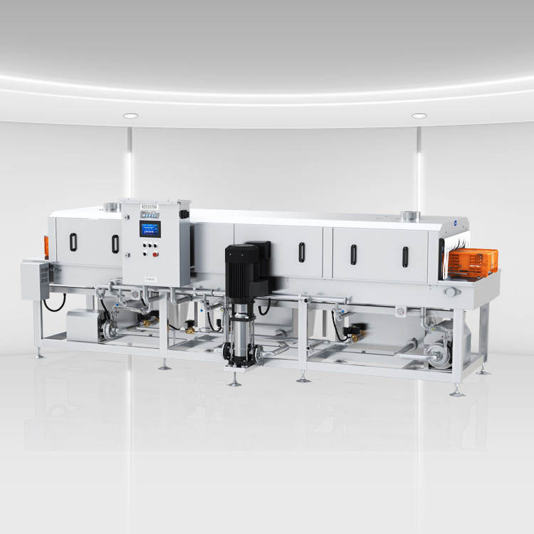 產(chǎn)品簡介:單凍器洗筐機XK-300無菌洗箱機應用于食品或容器具的清洗和消毒設備。食品、容器具等待清洗器具從周轉(zhuǎn)箱清洗機輸入端進入清洗隧道,經(jīng)過預洗、主清洗、漂洗、最后輸出,完成清洗過程。主要用于屠宰、肉類、水產(chǎn)、蔬果、飲料、釀造等食品加工廠或食品物流中心、配送中心等,也適用于各種周轉(zhuǎn)筐、盤、箱、托盤、等容器具的清洗和消毒。可節(jié)省用水量達70%,可比古老的人工清洗方法能節(jié)省人力7-8人。