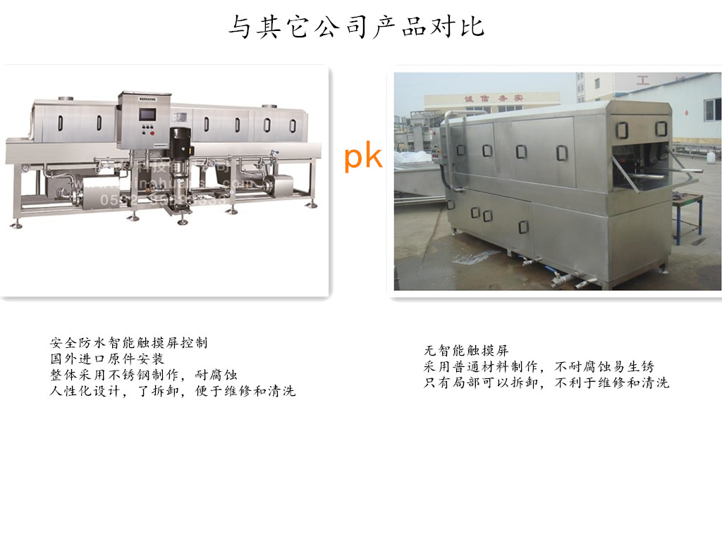 環速塑料周轉箱清洗設備XK-300無菌洗箱機應用于食品或容器具的清洗和消毒設備。食品、容器具等待清洗器具從周轉箱清洗機輸入端進入清洗隧道,經過預洗、主清洗、漂洗、最后輸出,完成清洗過程。主要用于屠宰、肉類、水產、蔬果、飲料、釀造等食品加工廠或食品物流中心、配送中心等,也適用于各種周轉筐、盤、箱、托盤、等容器具的清洗和消毒。可節省用水量達70%,可比古老的人工清洗方法能節省人力7-8人。