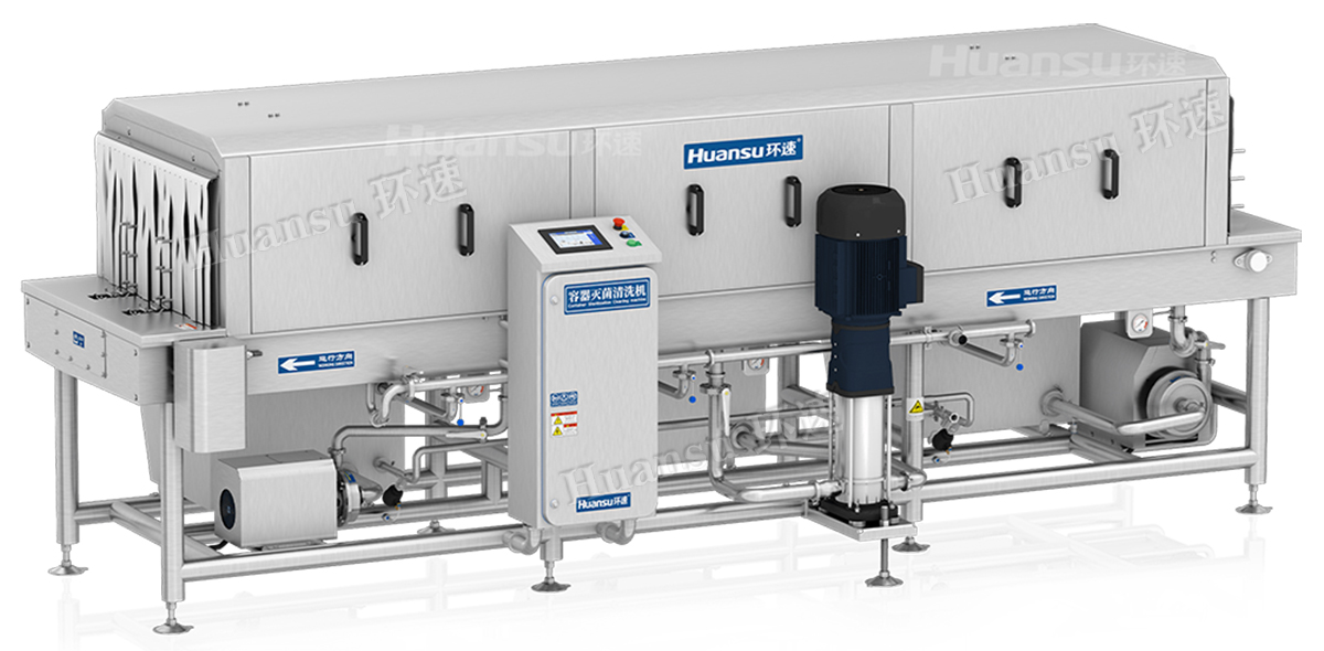 1.快速高質:容器清洗速度200-1800只/小時(清洗速度可調節),滅菌清洗速度1000-1200只/小時,通過專有的“四步快速清洗”方式使容器煥然一新(高溫高壓清洗滅菌)。將容器由衛生環鏈輸入清洗機中,依次通過預洗段、高壓清洗段、漂洗段、凈水清洗段,(風干或烘干段)。實現360°無死角清洗滅菌。利用康達效應設計的風結構,風刀角度、高度可根據容器形狀輕松調整,提升周轉使用效率;高溫烘干系統可對容器進行高溫滅菌并去除容器表面水分,提高容器周轉效率。
